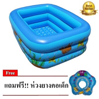 คุณสมบัติ Green Plus สระน้ำเป่าลม สระว่ายน้ำเด็ก Big size ขนาด160cm ขอบ 3;ชั้น (สีฟ้าทะเล) แถมฟรี ห่วงยางคอเด็ก